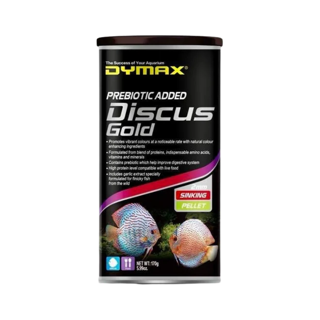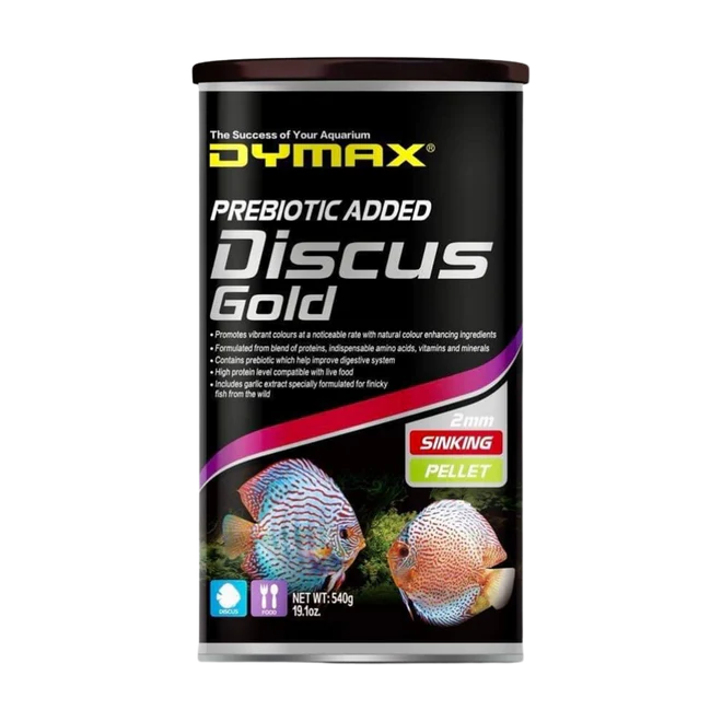Dymax Discus Gold is specifically developed with higher protein levels to provide rapid and healthy growth of discus and improve desirable body structure with excellent appearance and vibrant body colours. Discus has unique eating habits and are known to be finicky eaters. Discus Gold granule has been manufactured with lots of natural flavour attractants and premium ingredients to offer maximum acceptances and nutrition to the fish so they can be successfully bred without using other supplemental foods. Promotes vibrant colours at a noticeable rate with natural colour enhancing ingredients. Formulated from a blend of proteins; indispensable amino acids; vitamins and minerals. Contains prebiotics which help improve digestive system. High protein level comparable with live food. Feeding Instructions: Feed 2 to 3 times daily the amount of food the fish will consume within 5 minutes. Avoid over feeding and always remove left over food after the feeding period.